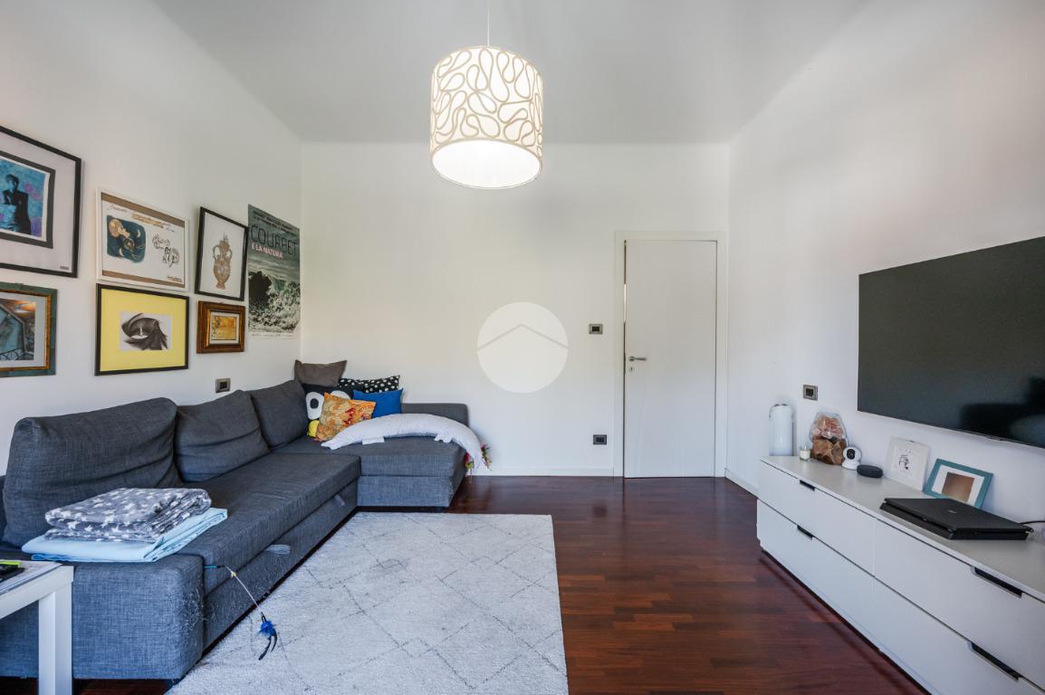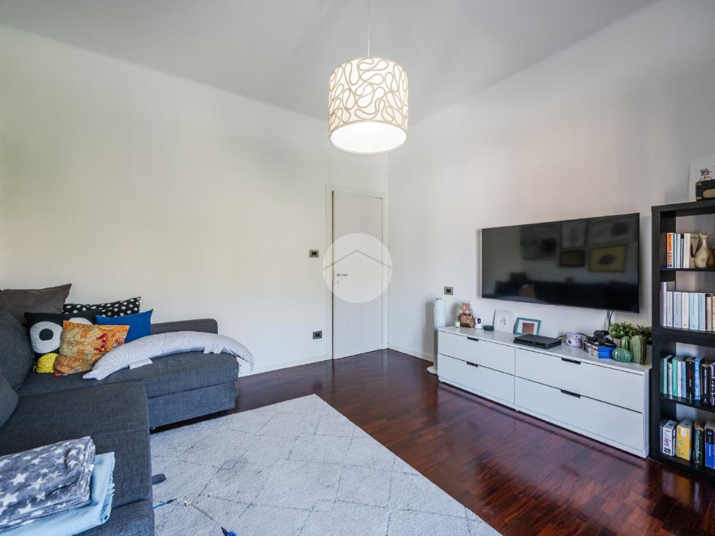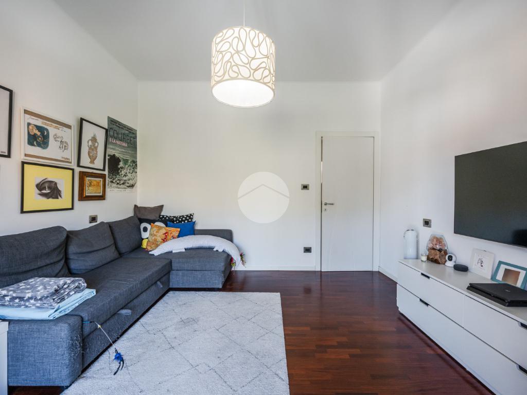 Ingresso arredabile, soggiorno con angolo cottura, spazioso living (con possibilità di utilizzo come seconda camera matrimoniale), balcone, camera padronale con funzionale cabina armadio e bagno. Completa la proprietà una cantina al piano seminterrato. Il riscaldamento all'interno dell'abitazione è alimentato da impianto autonomo e le spese di gestione condominiale risultano contenute.