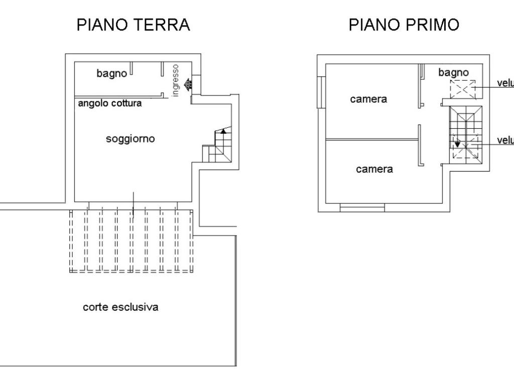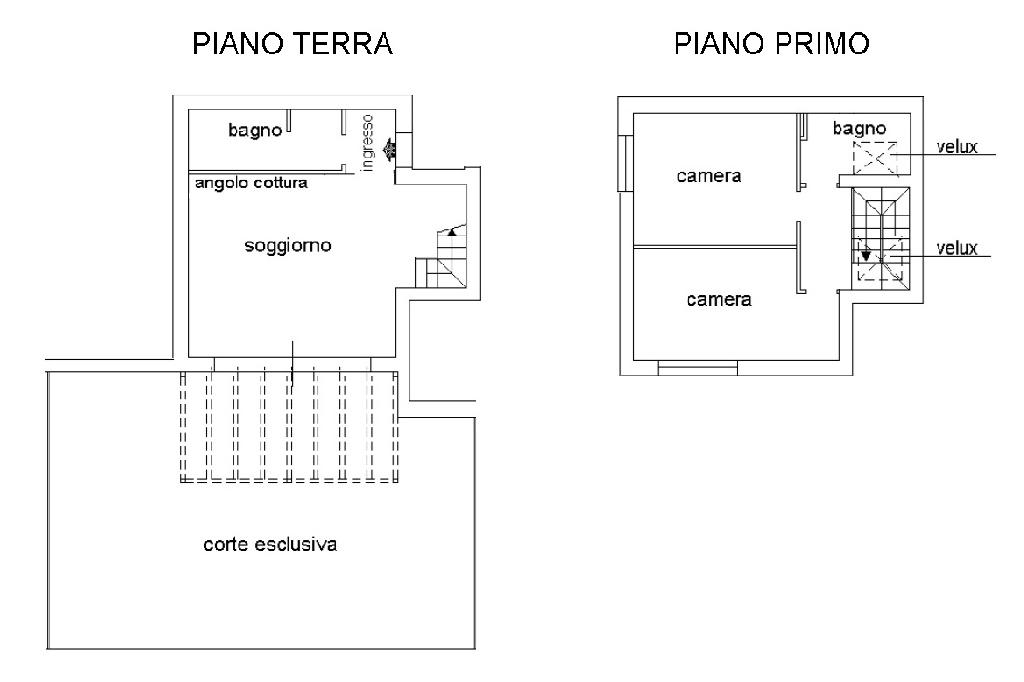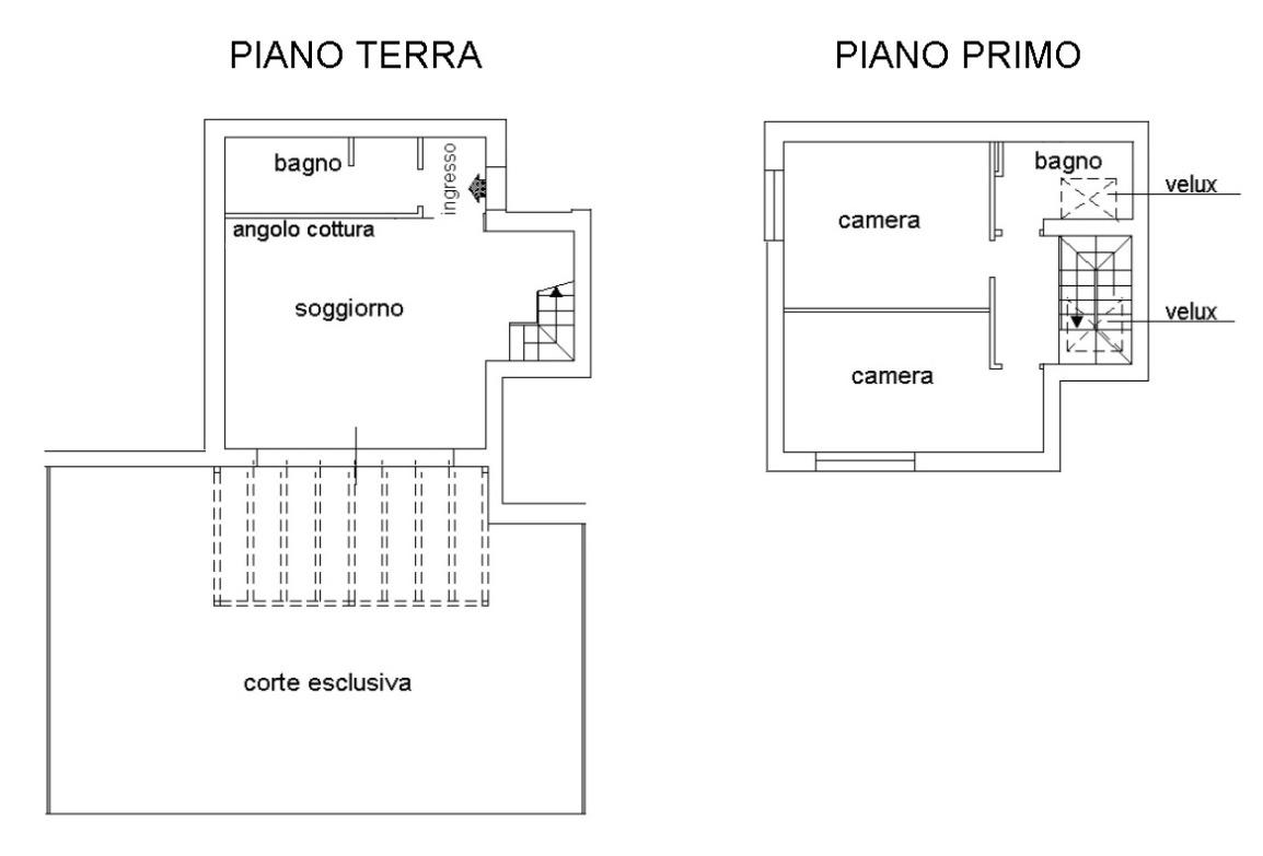 Al primo piano si sviluppa la zona notte con due camere da letto, disimpegno e bagno.