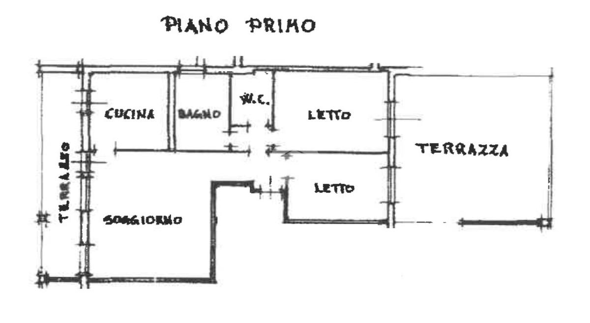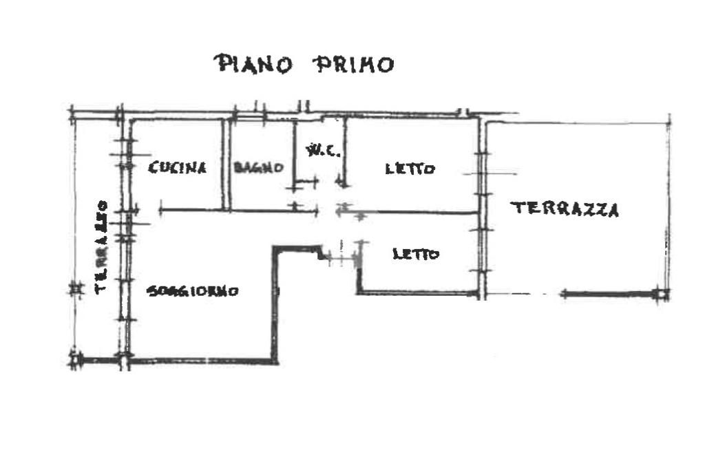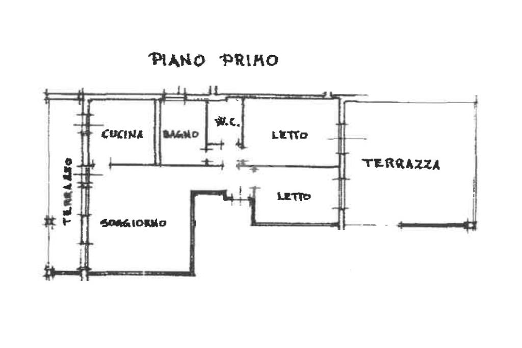 Ingresso, salone, cucina abitabile con accesso al terrazzo, disimpegno zona notte, due camere da letto con accesso al secondo terrazzo e due bagni. Al piano seminterrato completa la proprietà una cantina. Possibilità di autorimessa €20.000.