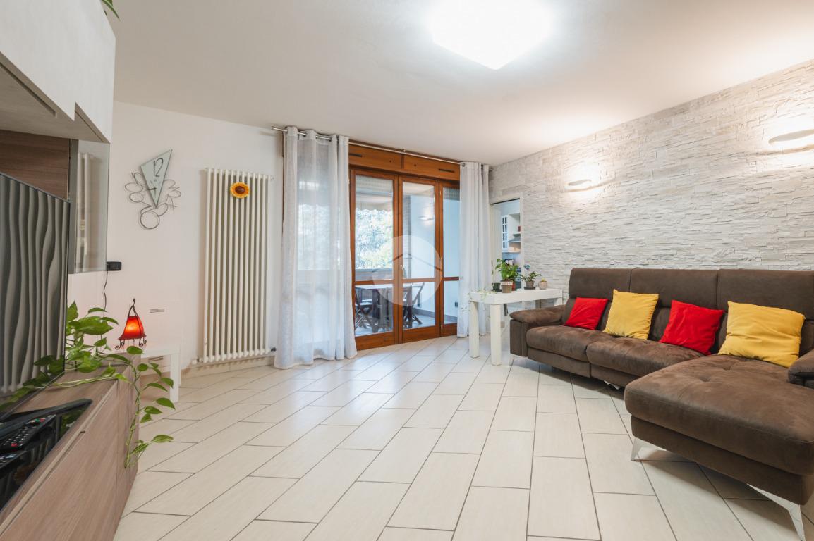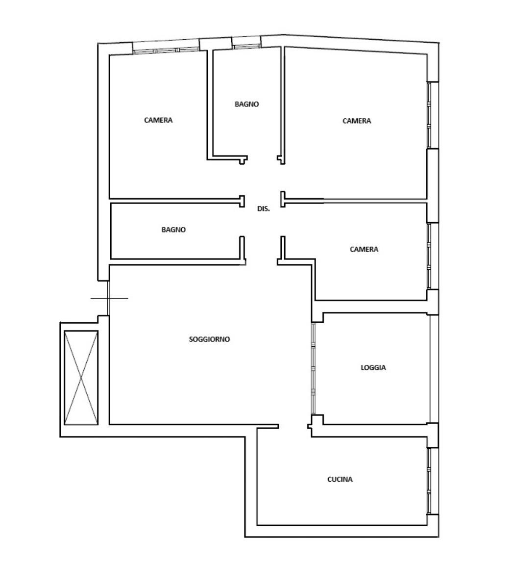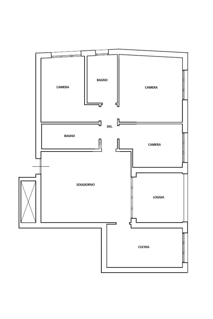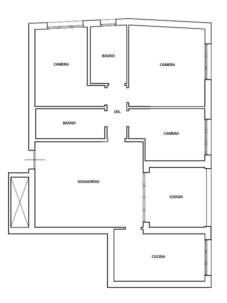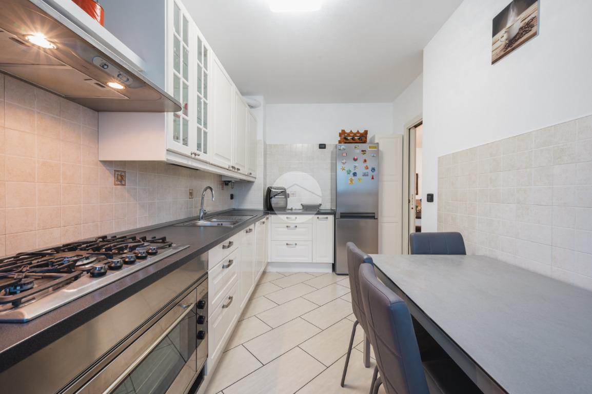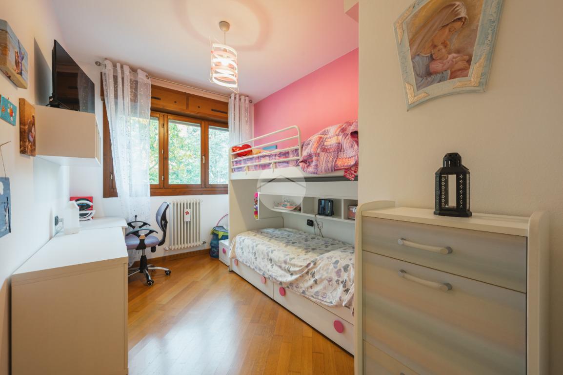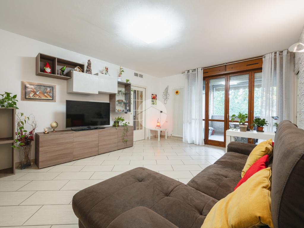 Ingresso sul soggiorno dal quale si accede al terrazzo loggiato, cucina abitabile, disimpegno zona notte, tre camere e due bagni. Al piano interrato possibilità di autorimessa doppia (€25.000,00). Infine l'immobile è dotato di un posto auto assegnato.