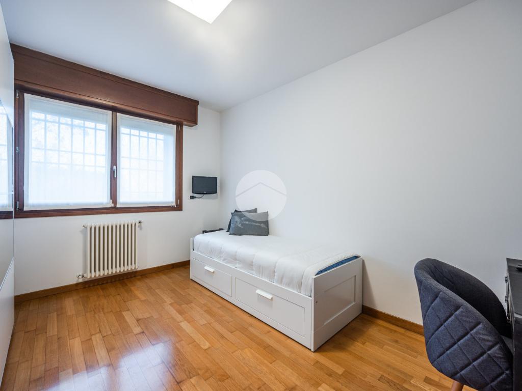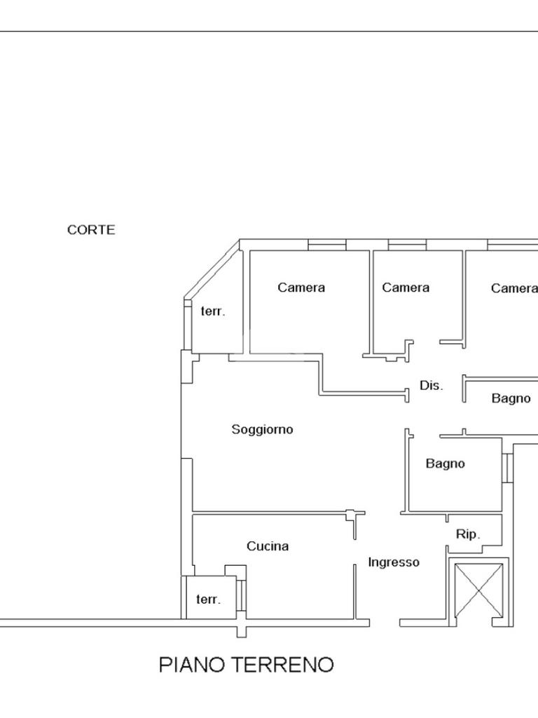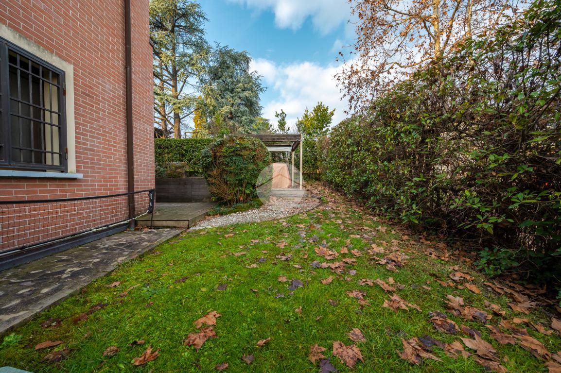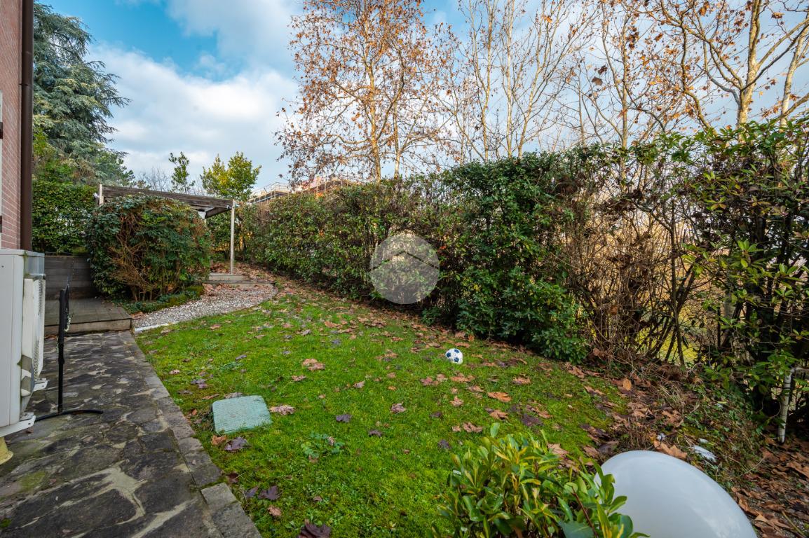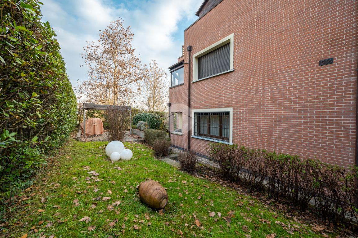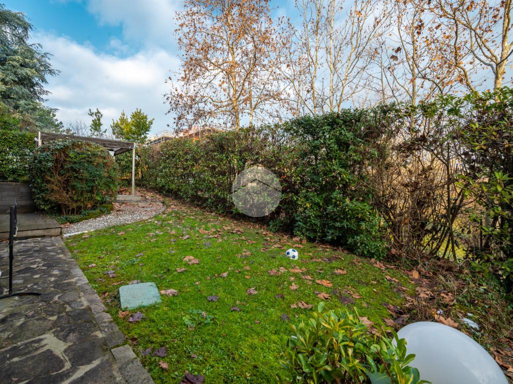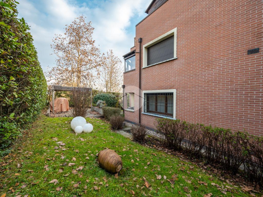 L'immobile è situato al primo piano ed è così composto: ampio atrio d'ingresso arredabile, zona giorno costituita da due ambienti separati, la cucina abitabile e la spaziosa sala dalle quali si accede al giardino privato. Tramite il disimpegno della zona notte si raggiungono le tre camere da letto e i due bagni. Infine l'immobile è dotato di un comodo ripostiglio.