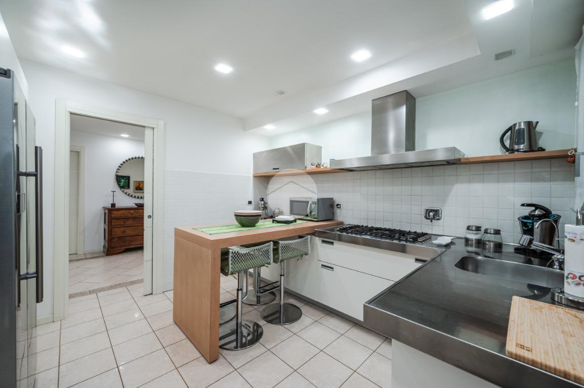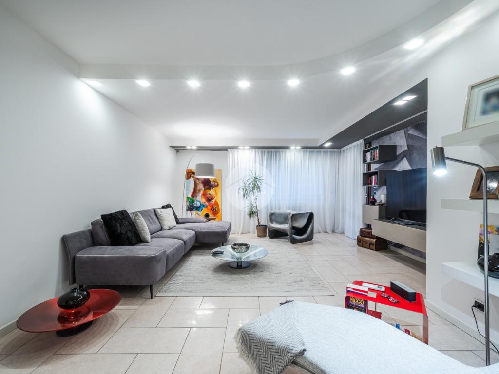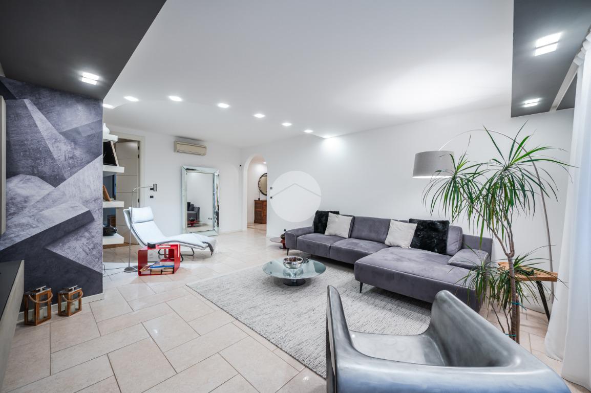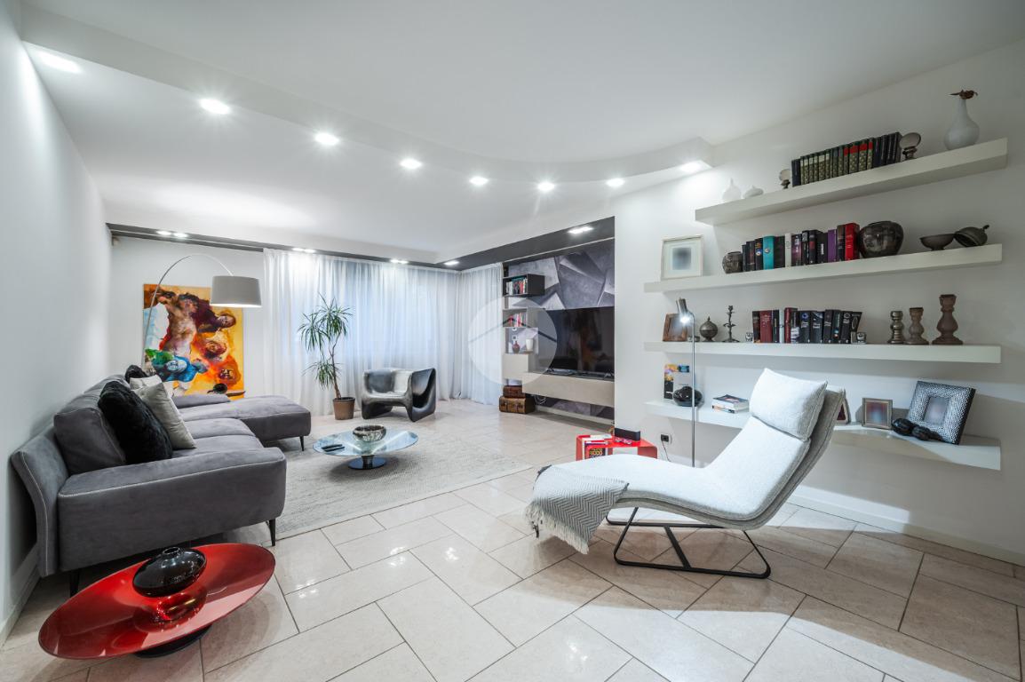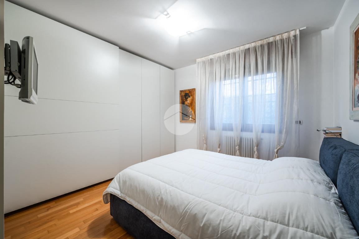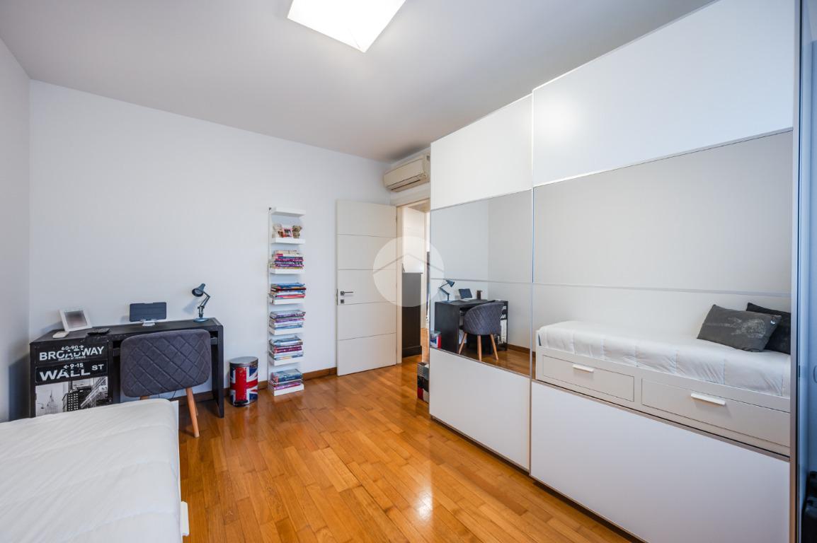L'immobile è situato al primo piano ed è così composto: ampio atrio d'ingresso arredabile, zona giorno costituita da due ambienti separati, la cucina abitabile e la spaziosa sala dalle quali si accede al giardino privato. Tramite il disimpegno della zona notte si raggiungono le tre camere da letto e i due bagni. Infine l'immobile è dotato di un comodo ripostiglio.
